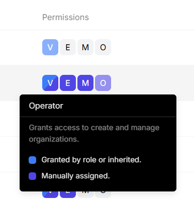 As an operator, you can assign operator permissions to other users. Assigning operator access grants structural and governance control at the organization level.