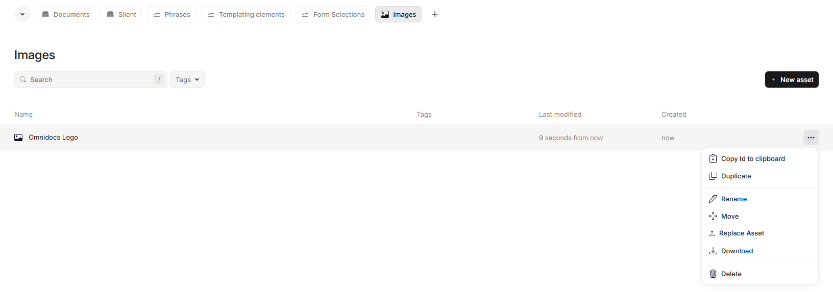 Asset sources are made for storing images. The images can be uploaded and organized into folders from the admin site. The assets are not directly available to the users, but are intended to be inserted into documents.