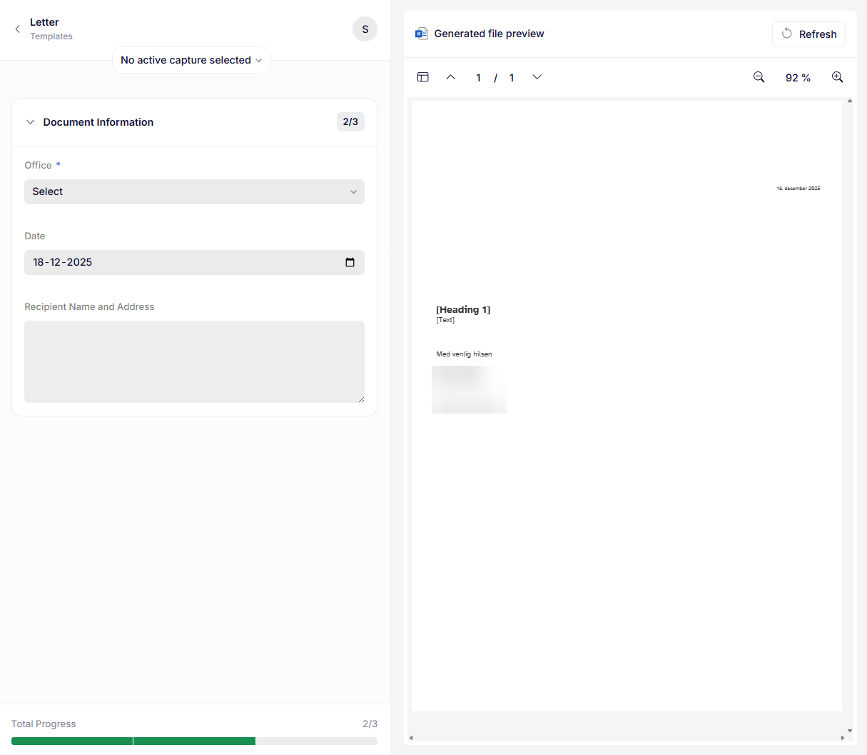 You will now be met with a form on the left, and a preview of the output document on the right.