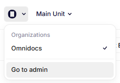 - Open the Create admin page by navigating to the user site, selecting the Omnidocs logo in the top right corner, and Go to admin.