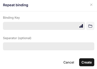 When adding a Repeat binding in a recipe through the binding editor, the following dialog is shown: