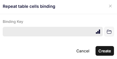 When adding a Repeat table cells binding in a recipe through the binding editor, the following dialog is shown: