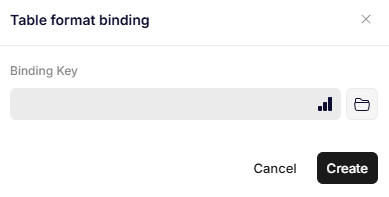 When adding a Table format binding in a recipe through the binding editor, the following dialog is shown: