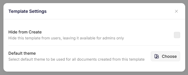 The Hide from Create setting determines whether the template is available to users when creating documents.